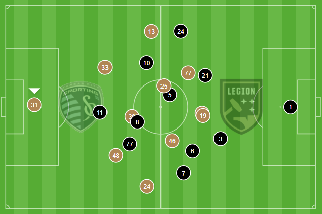 Ultimately, SKC II outshot the Legion 13-9, although only one was from really close range. Still, they finished with an xG of 1.00, better than the Three Sparks’ 0.63. And that gives rise to a coupe of questions: was it justifiable to use such a defensive game plan? Or did the game plan fail?