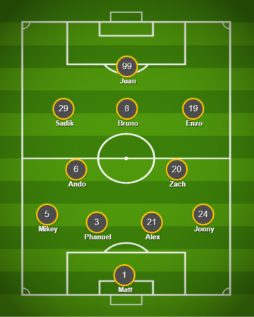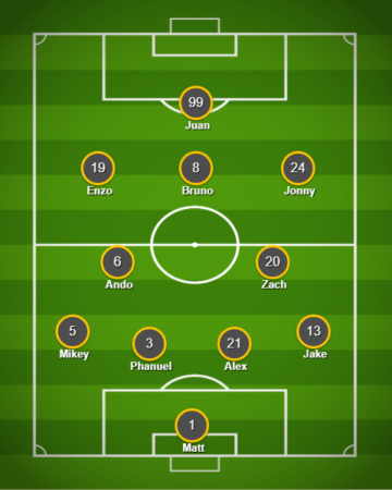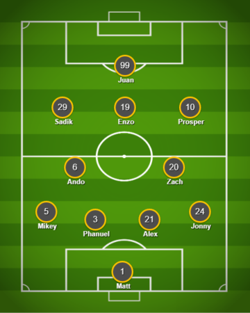 Enzo Martinez stayed at the CAM slot, the #8 position, but Sadik slid back into the left wing position and Prosper moved up into the right wing slot. Juan was now back to being the solo striker.