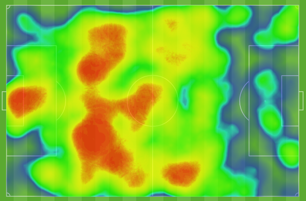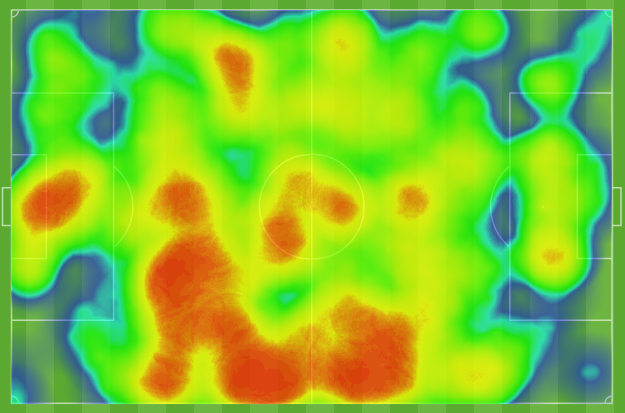 You can extract a 4-2-3-1 out of this, but let’s combine that with the heatmap for the first half:
