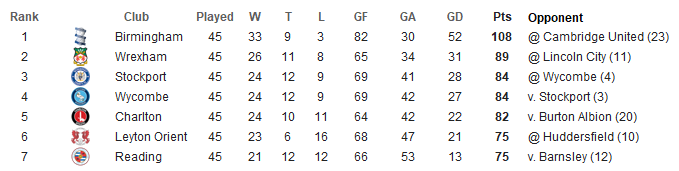 With the wins City now holds the EFL points record with a hefty 108, beating Reading’s 106 from 2006. Even before hitting 108 points the team’s 105 points was already a League One record and manager Chris Davies said at that point that he didn’t think the record would ever be beaten. Well, that took all of 4 days. And tomorrow they can take the record to 111 points, which will surely be a mark to stand in the record books a long time.