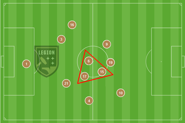 There’s much to unpack in this game; tactically it was a very interesting one. We have talked a bit about Total Football over the past few weeks, and we’ve also touched on midfield triangles. Here they come together to a meaningful degree and the combination is central to understanding how the Three Sparks played this past Saturday.